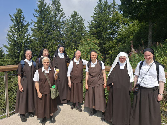 Auch der Ausflug am Samstag nach Freiburg zum Edith-Stein-Fenster im Münster, dem Kloster St. Lioba im Günstertal oder auf den Schauinsland inklusive Gondelfahrt stärkten unser Gemeinschaftsgefühl. Ergänzt wurde das Programm durch den offenen Austausch untereinander, zum Beispiel beim gemeinsamen Abendessen mit dem Konvent im Klostergarten oder kleineren Spaziergängen rund ums Kloster, sowie den Gottesdiensten am Morgen.
