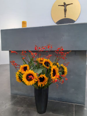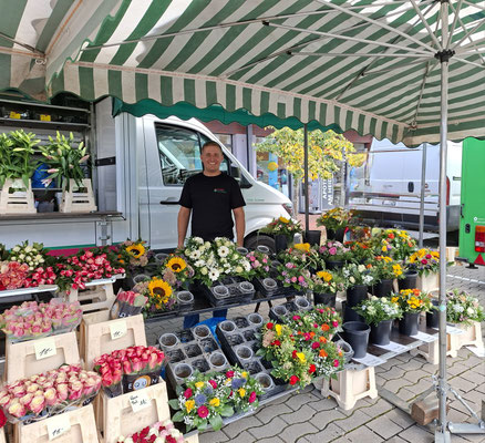 Jeden Freitagmittag kaufen wir unsere schönen Blumen für unsere Kirche auf dem Wochenmarkt bei Blumen Hoffmann.