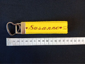 Gerne nähen wir Ihnen auch einen Schlüsselanhänger mit Namen.